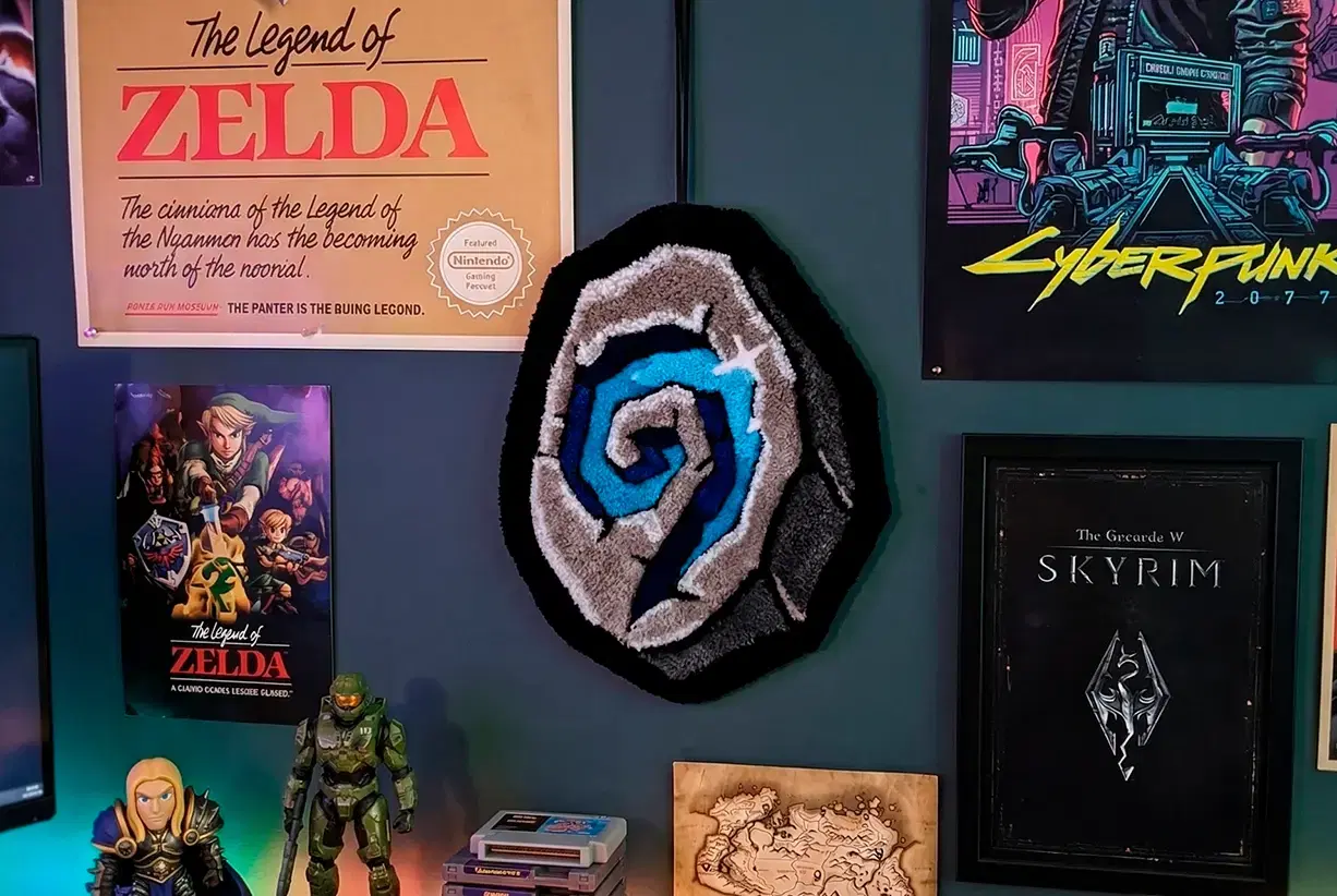 Компактный настенный тафтинговый ковер с символикой Hearthstone — стильный элемент декора для игровой комнаты. Ручная работа, мягкий объемный ворс и точная передача деталей.