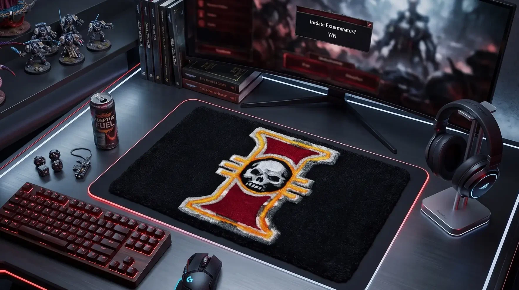 Коврик отлично подходит под клавиатуру и мышь, добавляя столу не только визуальный акцент, но и приятную тактильность. Мягкий ворс делает поверхность уютной, а плотная основа помогает изделию уверенно лежать на столе. Такой аксессуар смотрится как часть личного командного поста — будто перед вами не просто рабочее место, а терминал инквизитора, готового вынести приговор ереси.