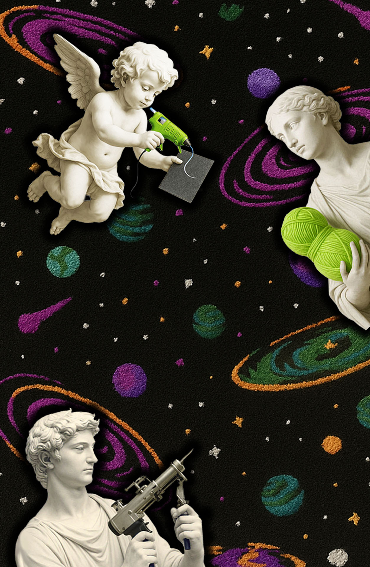 Ручной тафтинг — это уникальность, фактура и внимание к деталям. Каждый ковёр создаётся вручную, под заказ и не повторяется.